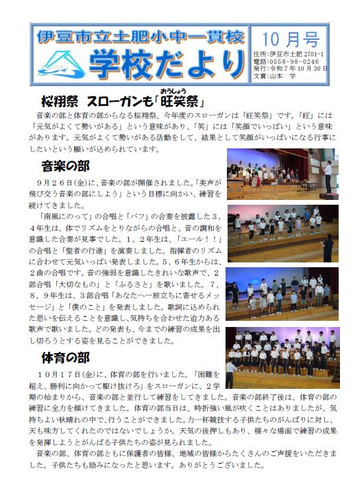 平成30年4月に、静岡県内初の義務教育学校「伊豆市立土肥小中一貫校」が開校しました。
