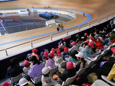 11月18日火曜日、自転車の国サイクルスポーツセンターで行われている「東京デフリンピック2025」の自転車競技の観戦に行ってきました。デフリンピックは耳が聞こえない人や聞こえにくい人のための国際的なスポーツ大会で、日本では初開催となります。声での応援が届かないので、手話によるサインエールで選手たちを応援しました。選手の応援をするボランティアの方たちの合図に合わせ、気持ちを込めたサインエールを送りました。観戦後は、サイクルスポーツセンターの職員の方から、ベロドロームの説明を聞きました。普段の学校生活とはちがう貴重な経験となった一日でした。