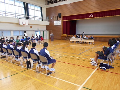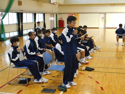 11月28日金曜日に、後期の生徒会による生徒総会が開催されました。人数が減少していく中でどのように委員会の活動をしていくか、委員会の再編について考える時間となりました。具体的な仕事内容についての質疑応答をはじめ、活発な意見交換がありました。今回の生徒総会で出た意見をもとに、よりよい委員会活動になるよう生徒会を中心に検討を進めます。