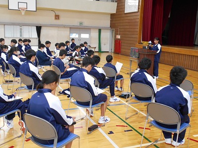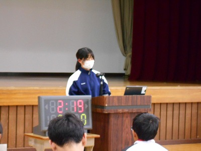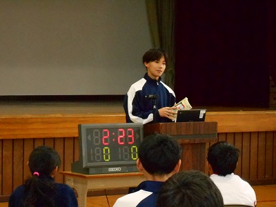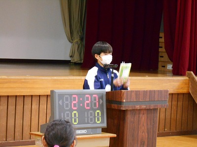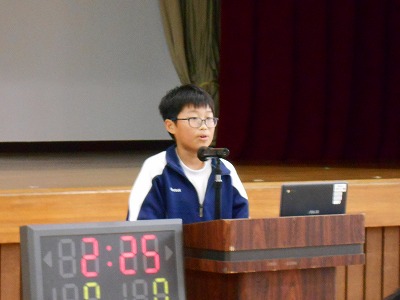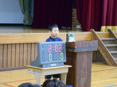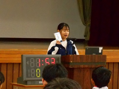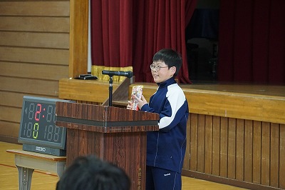 12月12日金曜日に5~9年生でビブリオバトルを行いました。ビブリオバトルとは参加者が自分の推薦する本を紹介し、最も読みたくなる本を競い合う形式で行われます。本日は、各学年のバトルを勝ち上がった代表者による発表でした。さすがに代表者。どの本も読みたいと思えるポイントをとらえた発表でした。参加者からの質問もあり、大変盛り上がった会になりました。