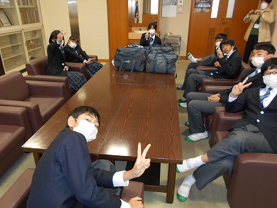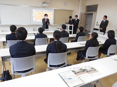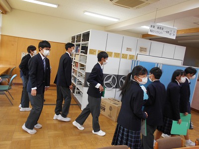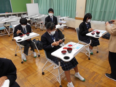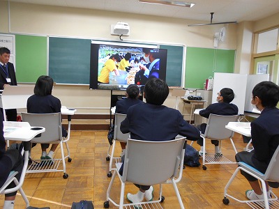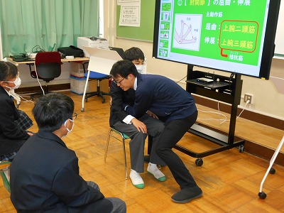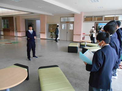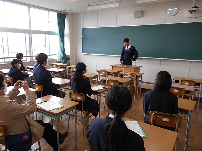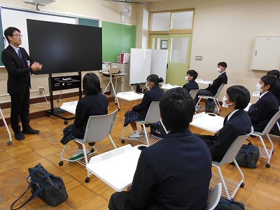12月9日火曜日に、8年生が三島南高校と知徳高校に見学に行きました。三島南高校では、土肥小中一貫校の卒業生と会う機会がありました。部活をやった方がいい、高校生活は楽しいといった先輩からの生の声を聞くことができました。知徳高校では、高校の先生による模擬授業を体験しました。福祉につながる「体の仕組み」の学習やマナー・作法の実習をしました。2校の見学を通して、自分の進路を考える意識が高まりました。