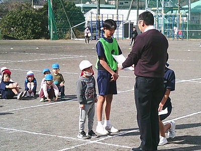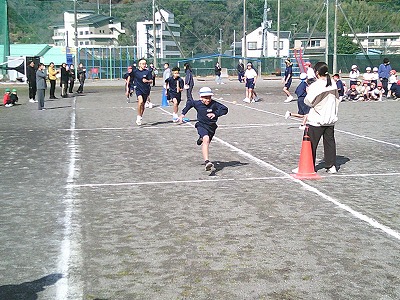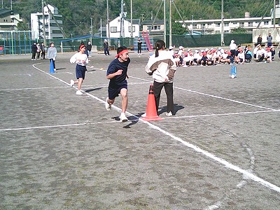 2月12日木曜日、こども園の年長びわ組も参加してリレー会を行いました。年長から9年生までの子供たちが、赤・黄・白・青の4チームに分かれて勝利を目指して走りました。今回のリレー会では、今までアンカーを務めてきた9年生から、8年生あるいは7年生がアンカーを引き継ぎ、一周を走るという重責を担いました。リレー会でも、一貫校のリーダーとして活躍した9年生から、新たにリーダーとなる下級生へ見事なバトンパスとなりました。