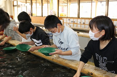 土肥金山の方々にお世話になりながら、坑道見学や砂金採りを楽しむことができました。
